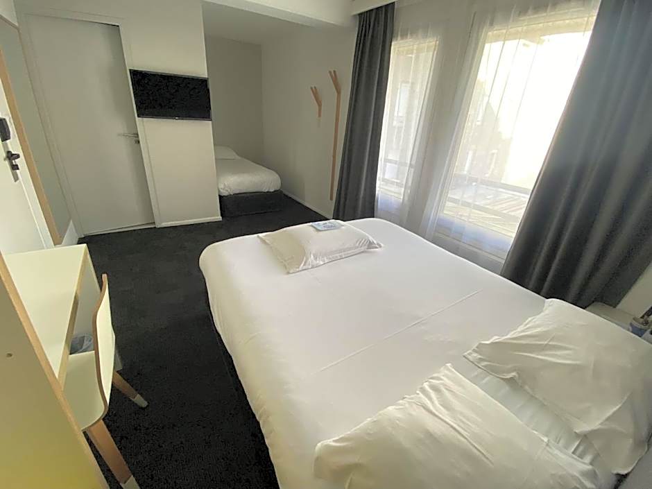 When you stay at the Kyriad Hotel Brest, you'll have a variety of room options to choose from to suit your needs. If you're traveling alone, the Solo Single Room is perfect for you, with a comfortable twin bed and a cozy room size of 129 square feet. For those traveling with family or friends, the Triple Room with 1 Double + 1 Single Bed is an excellent choice, accommodating up to three adults and one child. It features a spacious room size of 161 square feet and two comfortable beds.